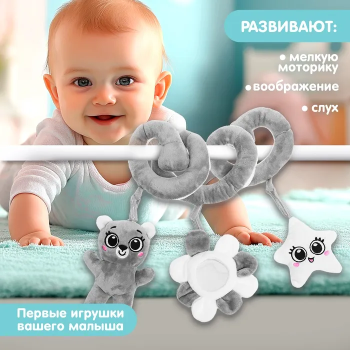 Спираль «Мишутка» способствует развитию моторики, координации движений и первых навыков сенсорного восприятия. Разнообразные текстуры, звуки и формы помогут вашему малышу исследовать мир, стимулируя интерес к окружающему. Игрушка создаёт атмосферу безопасности и комфорта, сопровождая ребёнка дома и на прогулке.
