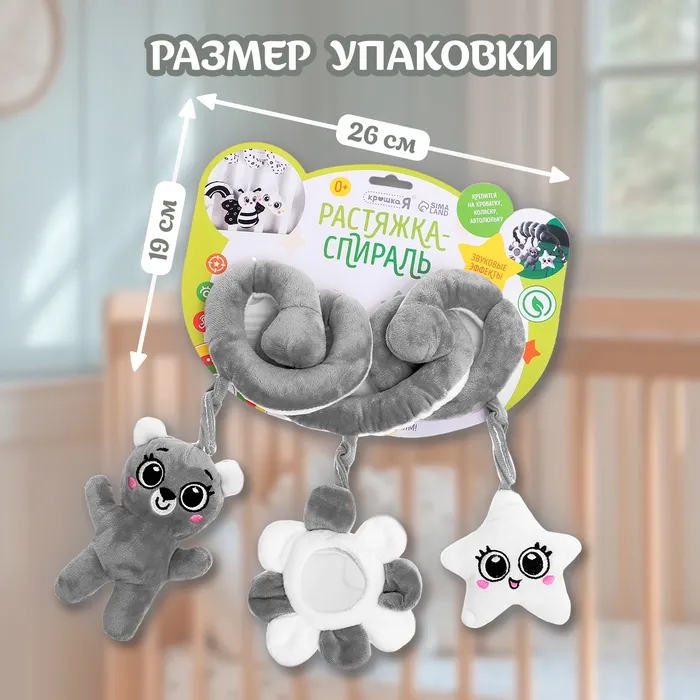 Игрушка для малышей «Мишутка» в виде мягкой растяжки-спирали станет прекрасным дополнением к кроватке ребёнка. Её удобно крепить на бортики или ручки коляски, превращая ежедневные прогулки или сон в увлекательное приключение. Спираль выполнена из текстиля, что делает её безопасной и приятной на ощупь для младенцев с первых дней жизни.