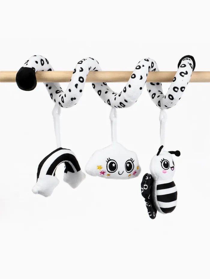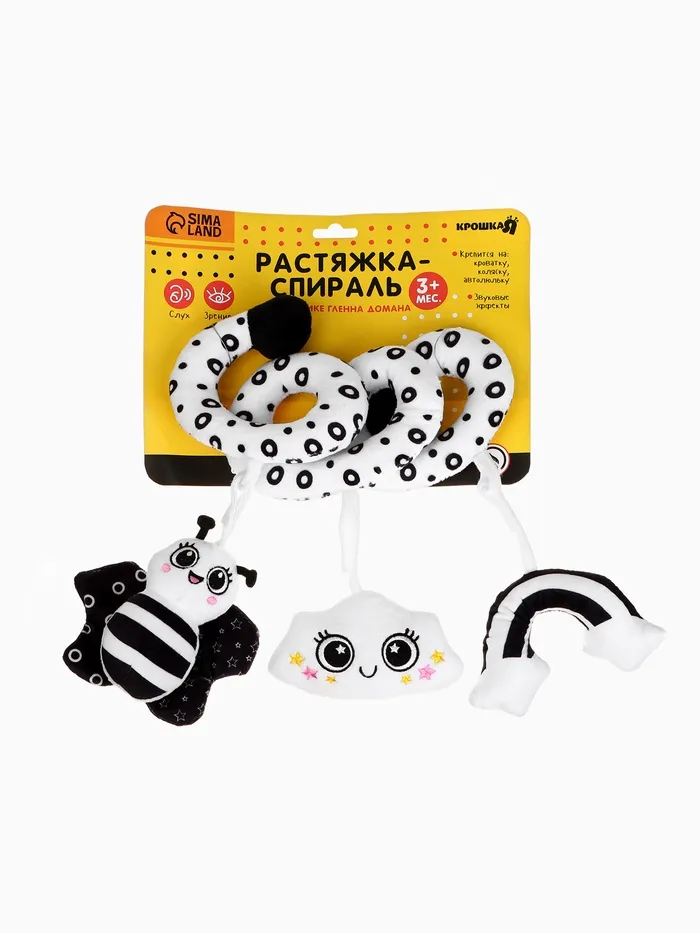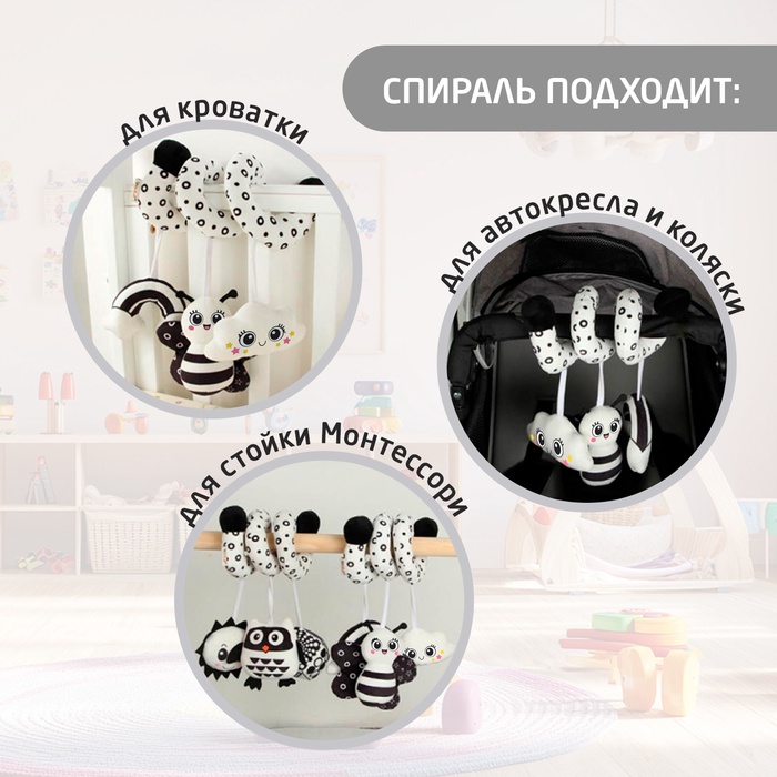 Спираль «Пчёлка» способствует развитию моторики, координации движений и первых навыков сенсорного восприятия. Разнообразные текстуры, звуки и формы помогут вашему малышу исследовать мир, стимулируя интерес к окружающему. Игрушка создаёт атмосферу безопасности и комфорта, сопровождая ребёнка дома и на прогулке.