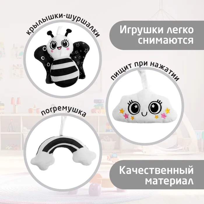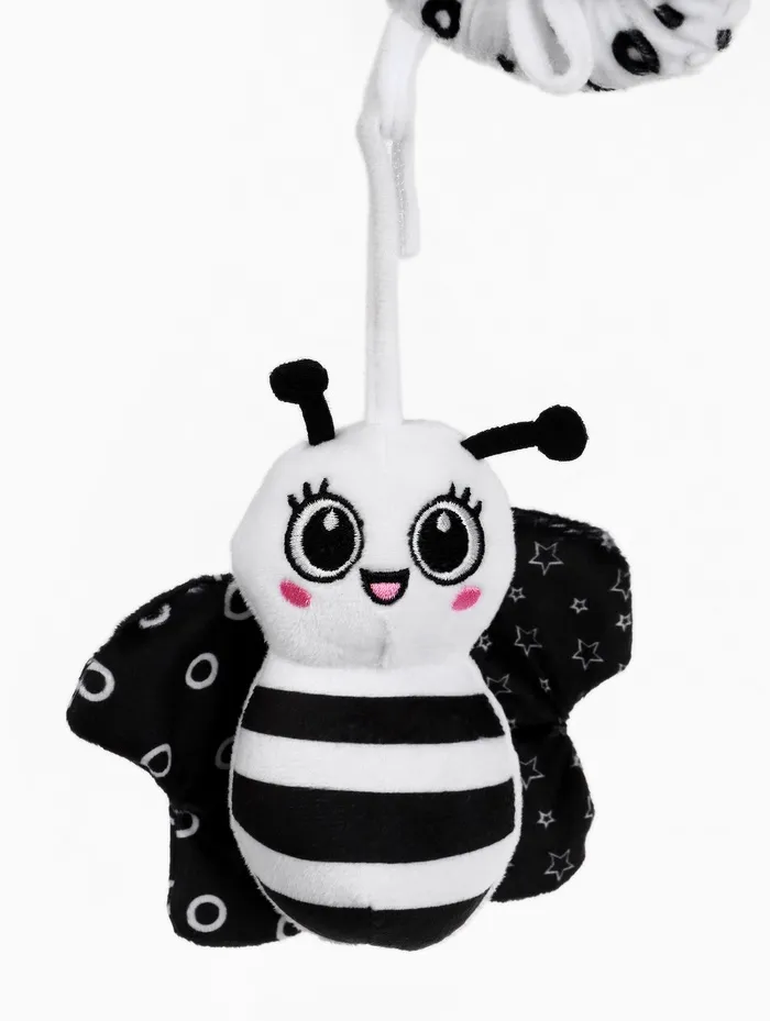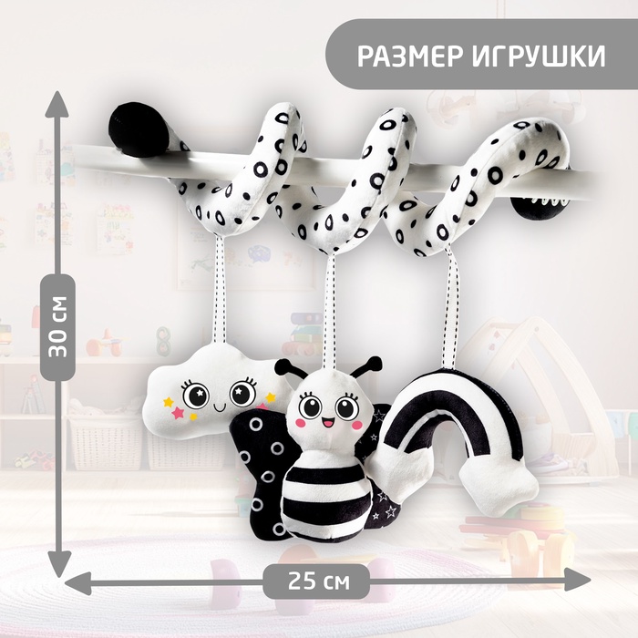 Игрушка для малышей «Пчёлка» в виде мягкой растяжки-спирали станет прекрасным дополнением к кроватке ребёнка. Её удобно крепить на бортики или ручки коляски, превращая ежедневные прогулки или сон в увлекательное приключение. Спираль выполнена из текстиля, что делает её безопасной и приятной на ощупь для младенцев с первых дней жизни.