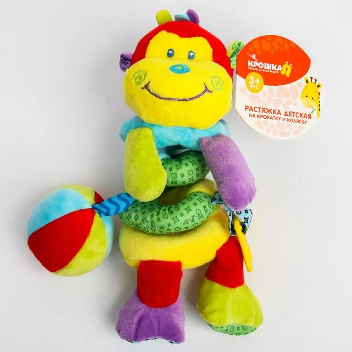 Растяжка - спираль с игрушками дуга на коляску / кроватку для малышей 0+ «Обезьянка яркая», Крошка Я