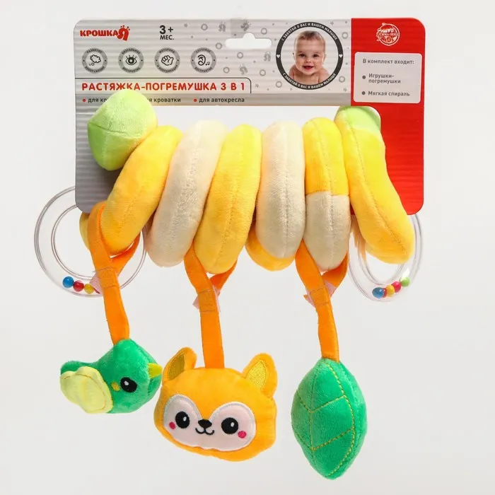 Мягкую и гибкую спиралевидную растяжку можно легко обмотать вокруг бортика кроватки, ручки автокресла, бампера коляски, разместить на шезлонг.