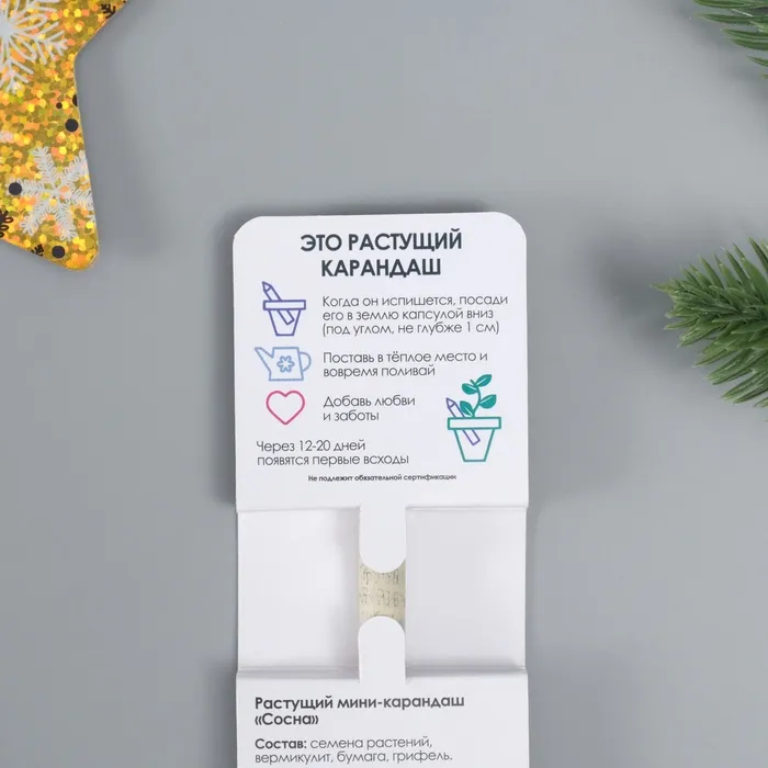 Растущий карандаш подарочный новогодний «Сосна», mini, простой чернографитный — Характеристики