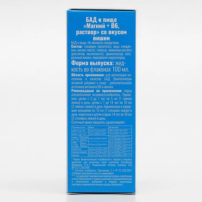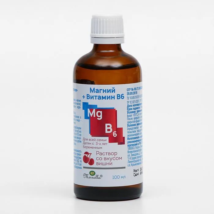 Состав: глицерин (носитель), вода очищенная, магния лактат, глюкоза, лимонная кислота (регулятор кислотности), ароматизатор натуральный вишня, пиридоксина гидрохлорид.
