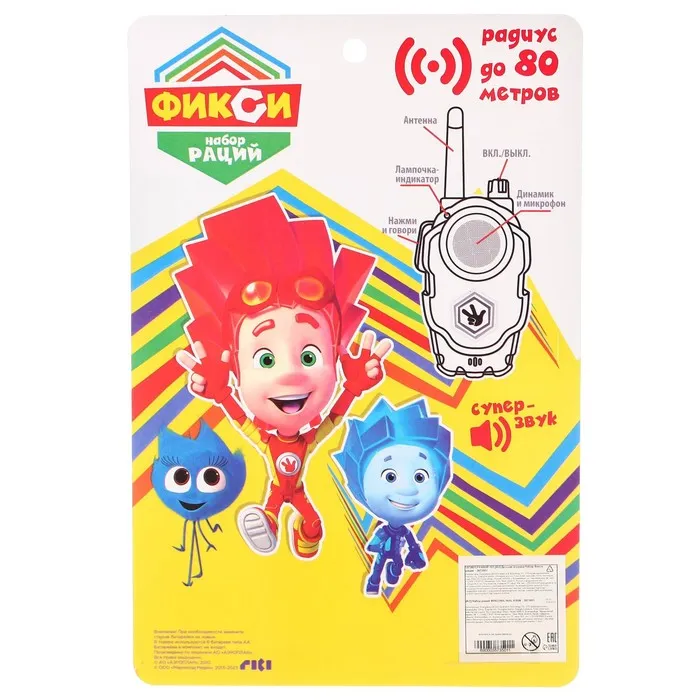 - Яркий дизайн – рации оформлены в стиле популярных героев мультсериала «Фиксики», что делает игру ещё интереснее.