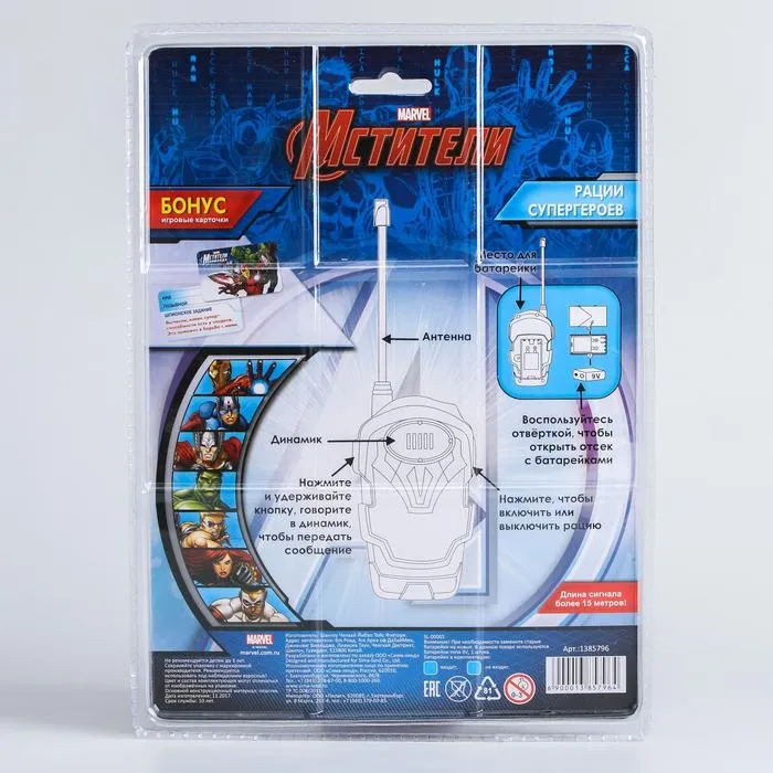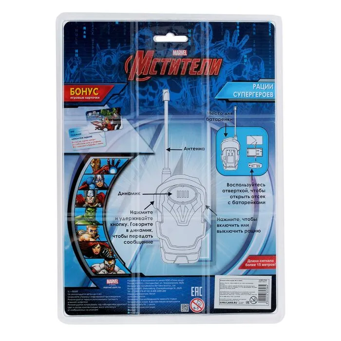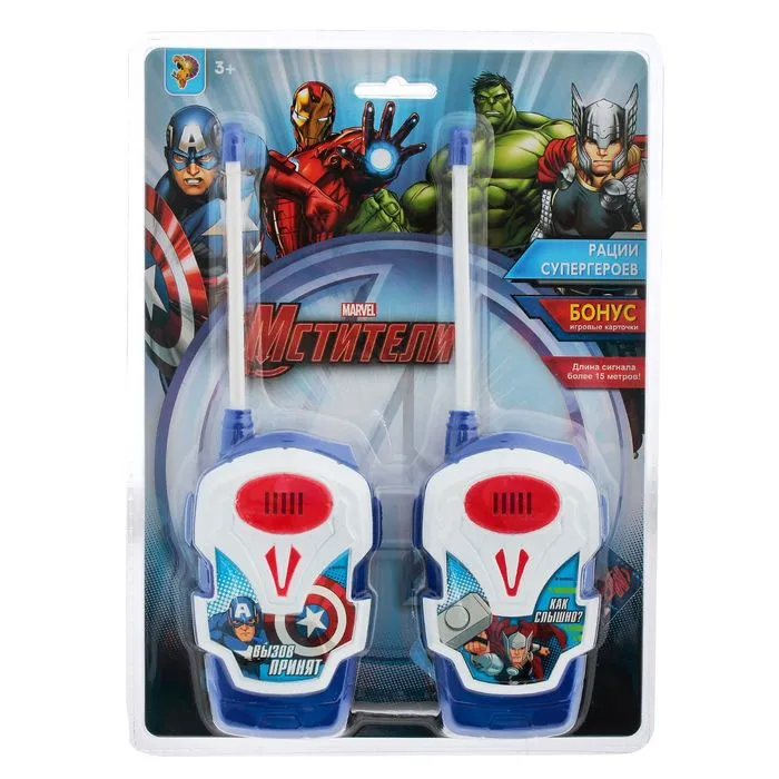 Что нужно настоящему супергерою, чтобы спасти человечество? Конечно его суперсила, а также рации торговой марки Marvel. С ними малыш станет непобедимым, ведь он позовёт своих друзей на помощь и с лёгкостью одолеет врага.