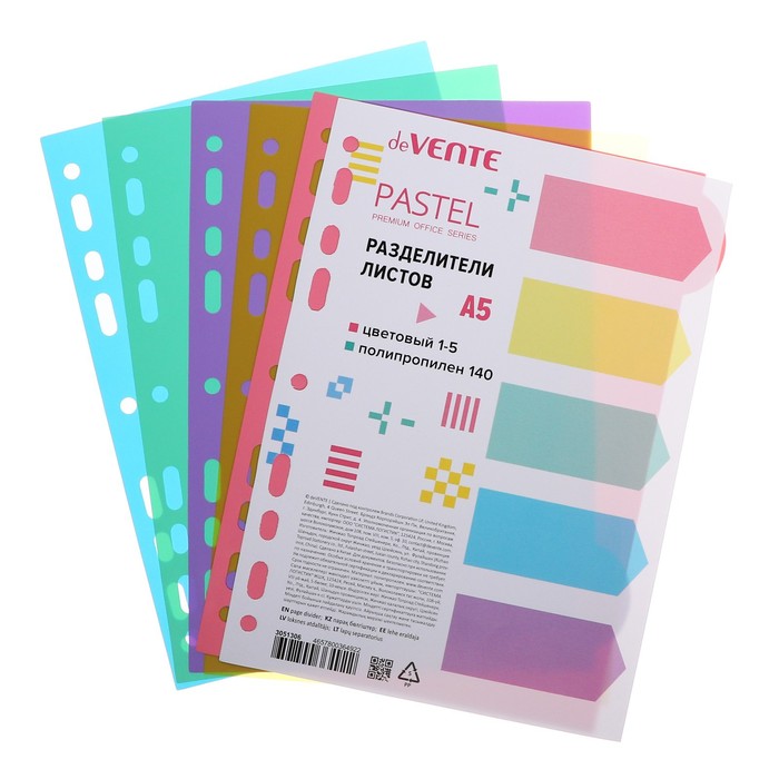 Разделитель листов A5 (210×165 мм) цветовой, 5 листов, "deVENTE. Pastel" полипропилен 140 мкм, индивидуальная упаковка — Характеристики