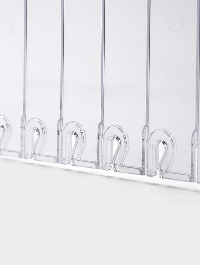 - Пластичность материала обеспечивает безопасность сотрудников и покупателей, сводя к минимуму риски порезов и других травм.