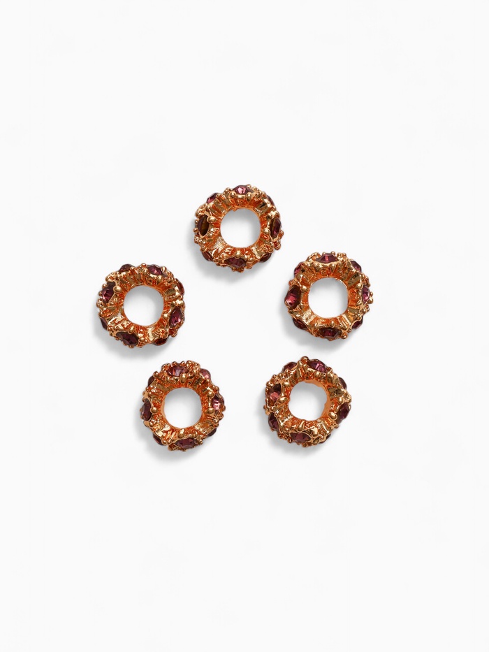 Разделители с изящным цветочным мотивом в нежно-розовом оттенке на золотистом металлическом основании придают украшениям особую изысканность и лёгкость. Набор таких элементов открывает широкие возможности для создания стильных и гармоничных композиций, подчёркивая женственность и утончённый вкус.