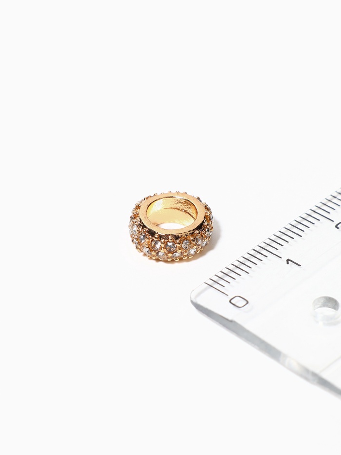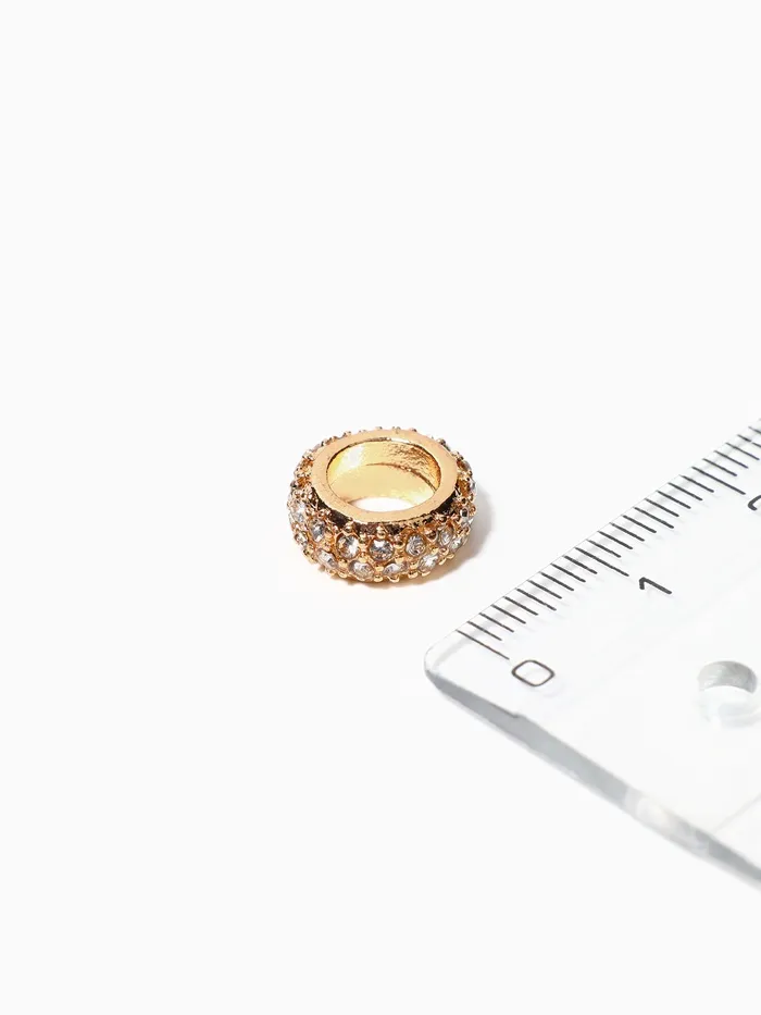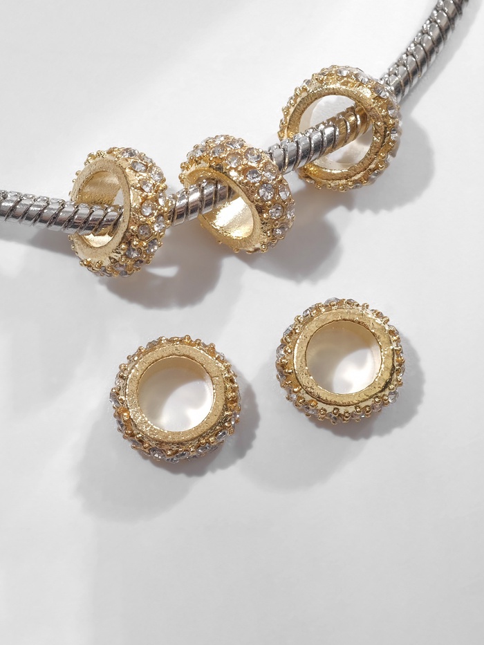 Белые разделители с золотистым основанием и сверкающими стразами добавляют украшениям изысканный блеск и аккуратные акценты. Их компактный размер — всего 0,9 см — позволяет гармонично разделять бусины, сохраняя лёгкость и изящество изделия.