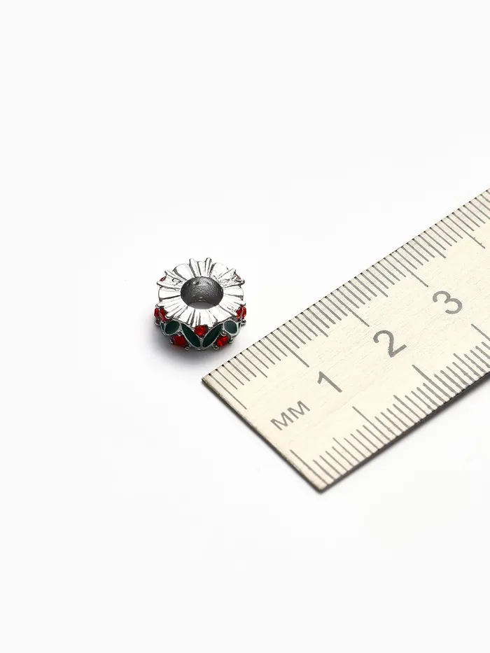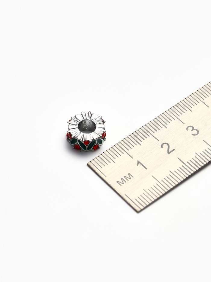 Разделители для бусин в виде листьев с яркими красными и зелёными акцентами на серебряном основании создают живой и выразительный образ украшений. Их изящный дизайн с эмалью и стразами придаёт изделиям натуральную свежесть и праздничное настроение, отлично вписываясь в тематику 8 Марта, Нового года и других важных событий.