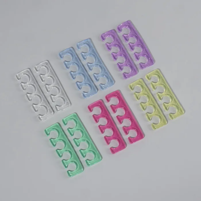 Разделители пальцев ног — это необходимый аксессуар для хорошего и качественного педикюра. Обеспечивают чёткую фиксацию пальцев, надёжно защищают наносимое лаковое покрытие или рисунок на ногтях от смазывания, облегчают сушку. Материал: силикон.