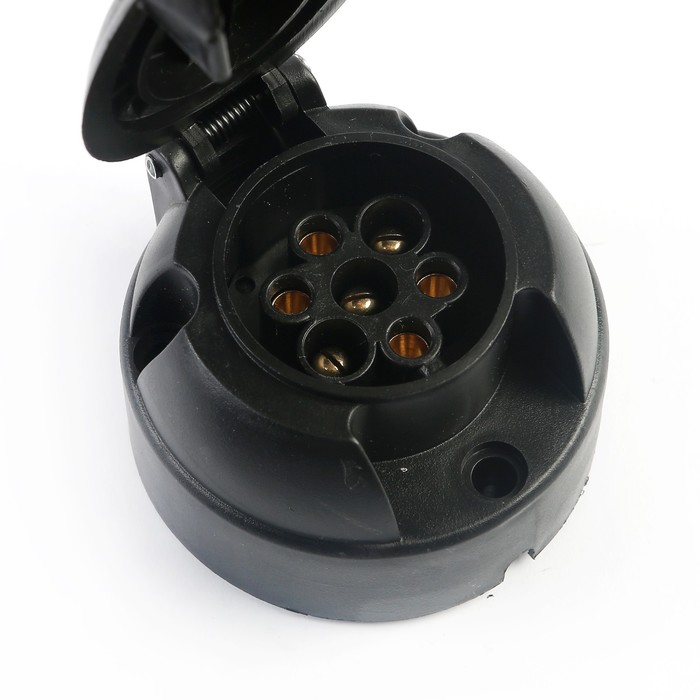 Разъем прицепа пластмассовый - это важный элемент, используемый для подключения электрических и пневматических систем автоприцепов к автомобилю-тягачу. Он состоит из двух частей, одна из которых устанавливается на автомобиле-тягаче, а другая - на прицепе. Разъем изготовлен из прочного и надежного пластика, который обеспечивает долгий срок службы и устойчивость к различным погодным условиям. Благодаря своей конструкции, разъем обеспечивает герметичное соединение, предотвращая попадание воды и пыли внутрь электрических и пневматических систем, что может вызвать их повреждение.