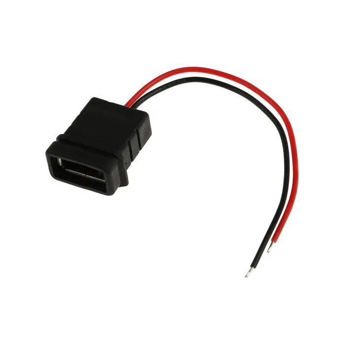 Гнёздо USB с проводом 10 см, 2 pin, 0.5 А, 5 В, чёрного цвета — это компактное и практичное решение для зарядки различных устройств, таких как смартфоны, планшеты и другие гаджеты. Оно оснащено двумя контактами (2 pin) и поддерживает максимальный ток 0.5 А и напряжение 5 В, что обеспечивает быструю и эффективную зарядку. Чёрное цветовое решение делает устройство стильным и универсальным, подходящим для любого интерьера.