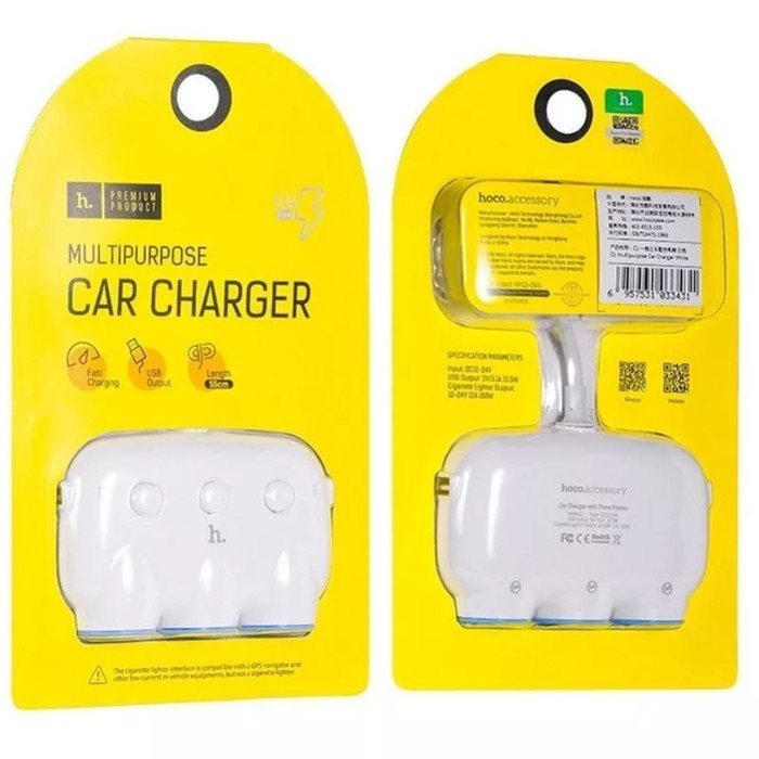 Разветвитель прикуривателя Hoco C1, белый — Характеристики