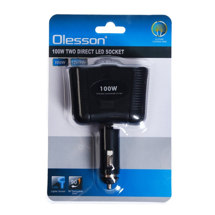 Разветвитель прикуривателя на 2 слота с подсветкой, 100 Вт — Характеристики