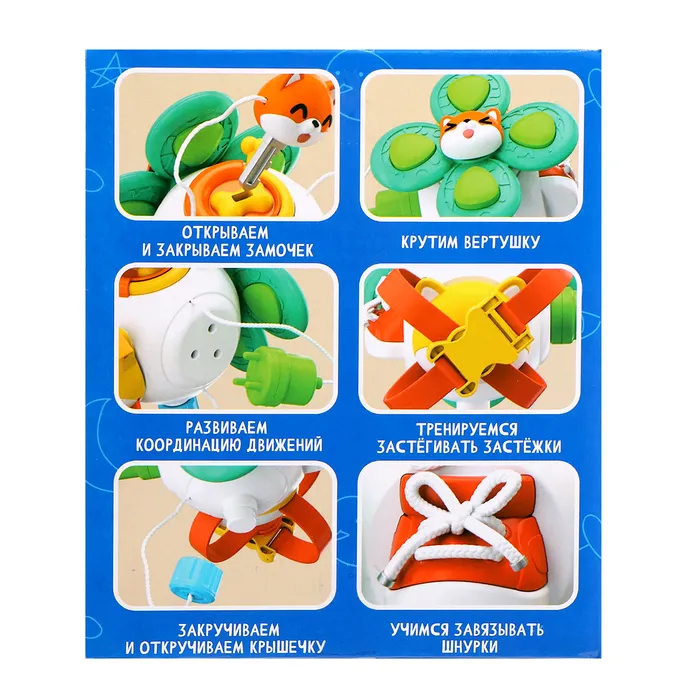 Развивающая игрушка «Зверушка-вертушка» — это увлекательный помощник для малышей, который превращает обучение в весёлую игру. С её помощью ребёнок осваивает важные навыки, такие как завязывание шнурков, закручивание крышечек и открывание замков, что делает её идеальной для подготовки к самостоятельности.