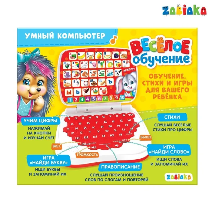 «Умный компьютер» — это увлекательная развивающая игрушка, которая познакомит малыша с алфавитом, цифрами, основами счёта, правописания и логики, а также развлечёт стихами. Детский гаджет способствует улучшению памяти, логического мышления, цветового и звукового восприятия.