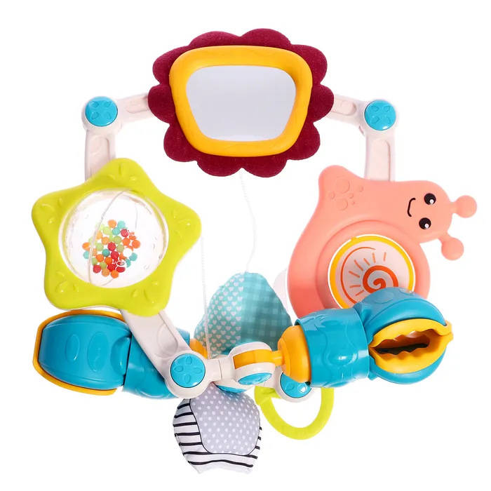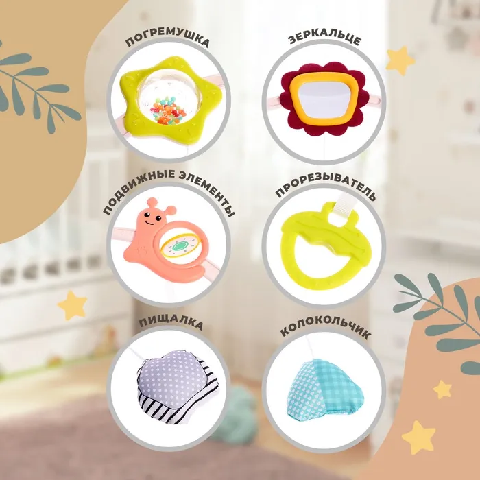 - Элемент с погремушкой отвлечёт ребёнка во время капризов.