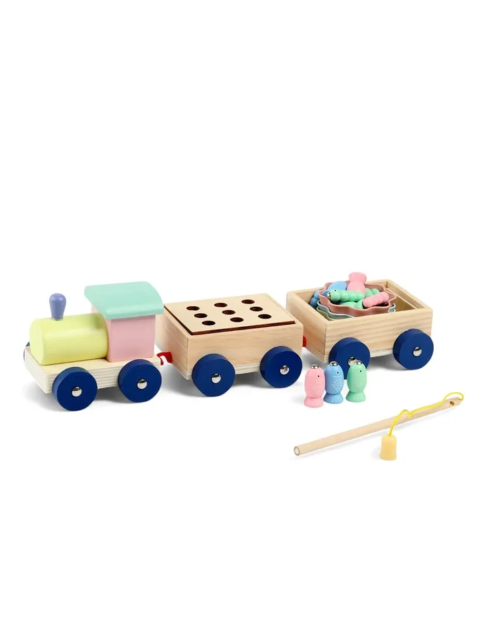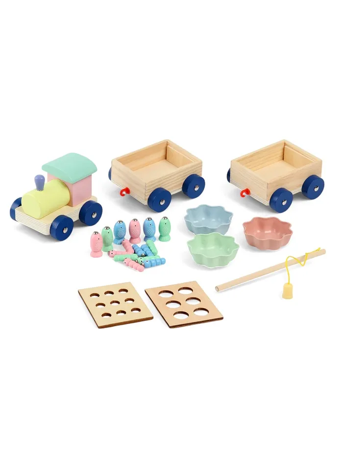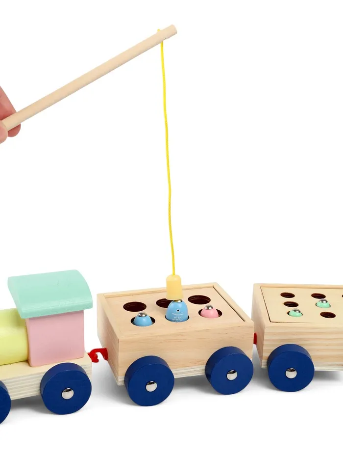 Деревянная развивающая игра 3в1 «Паровозик» — это многофункциональный набор для малышей, который включает рыбалку, сортер и каталку. В комплекте 22 элемента: яркие рыбки, червячки и трёхвагонный паровозик. Игрушка сделана из натурального дерева, безопасна для детей и помогает развивать важные навыки.