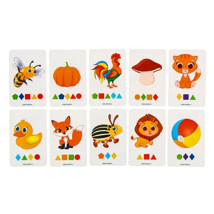 Играть очень просто: выберите карточку, попросите малыша подобрать нарисованные фишки, разложите их в том же порядке, что и на картинке, прочитайте слово.