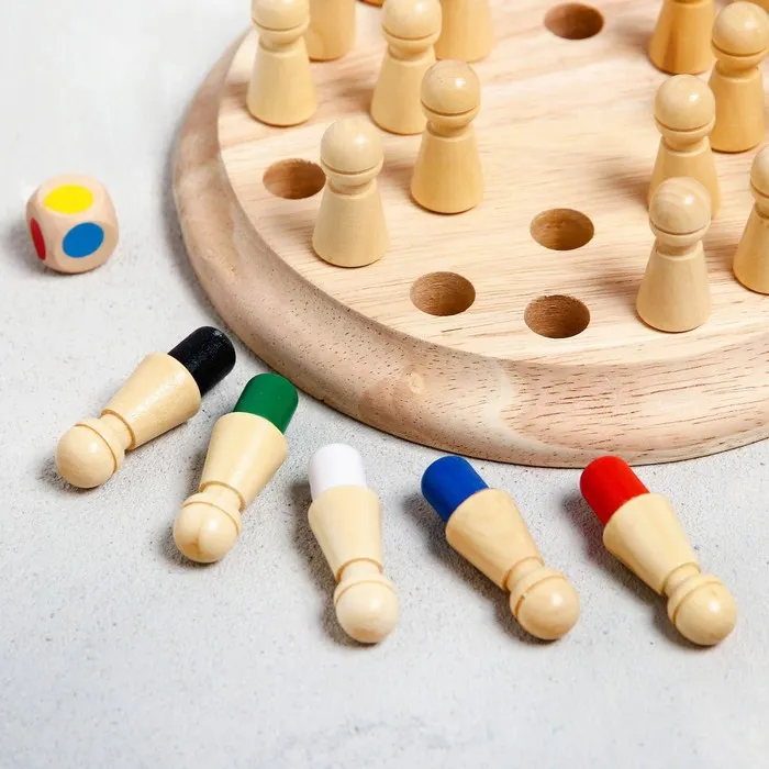 - Задача каждого участника — запомнить положение фигур (стержень какого цвета находится в каждом отверстии подставки).