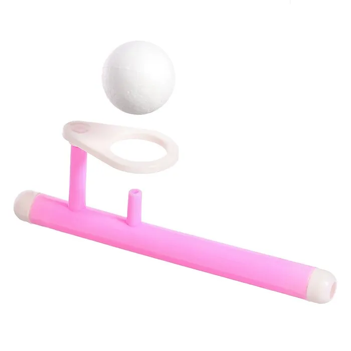 - Положите шарик в отверстие и плавно подуйте в трубочку так, чтобы шарик парил в воздухе.