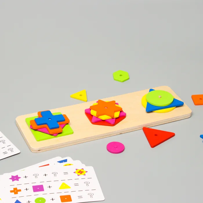 Логическая игра с геометрическими фигурами для детей от 3 лет. Набор помогает изучать формы, цвета и развивать важные навыки через увлекательные задания.