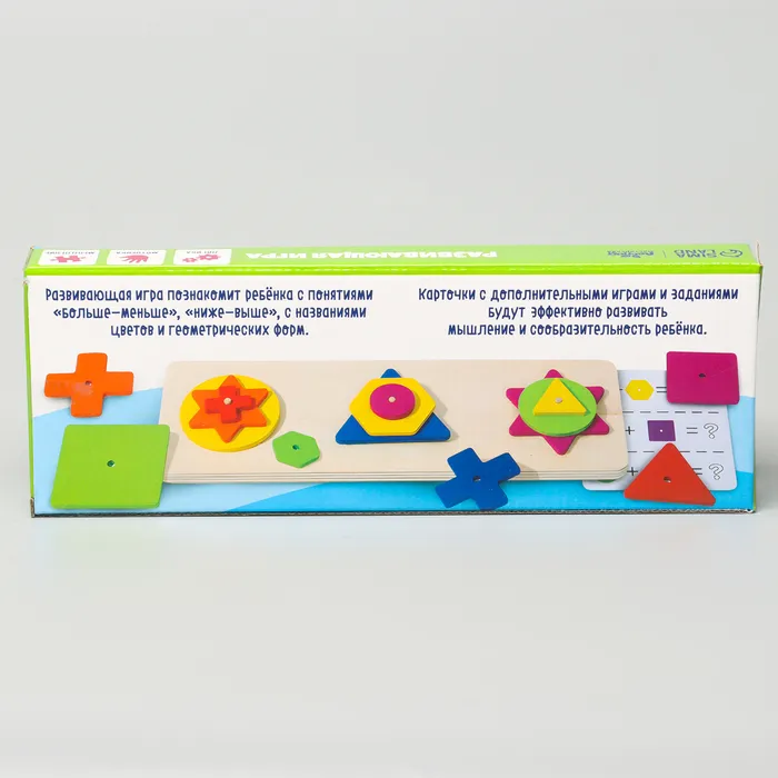 Игра развивает логику, память, мелкую моторику и расширяет кругозор. Ребёнок учится распознавать геометрические фигуры, цвета и решать логические задачи. Карточки с заданиями делают процесс обучения разнообразным и увлекательным.