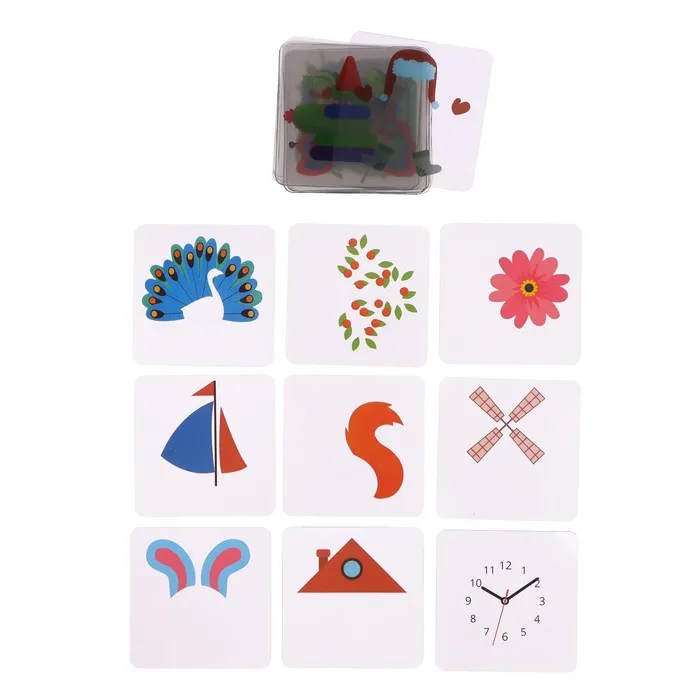 - Разложите перед малышом карточки для лото и прозрачные карточки.