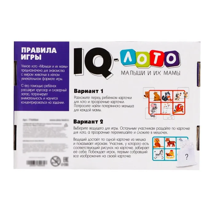 Развивающая игра IQ-лото «Мамы и малыши», 2 игрока, 3+ — Характеристики