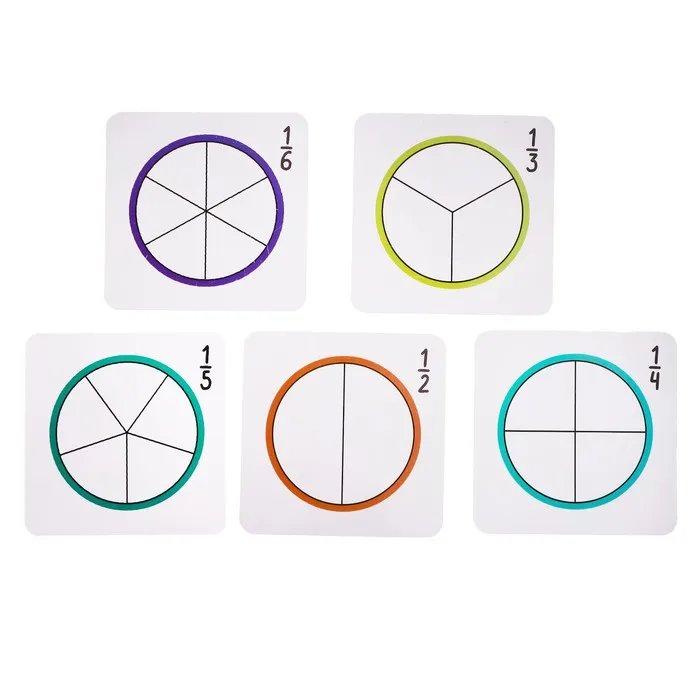 - Выберите одну из карточек с заданием и положите рядом прозрачные карточки с кругами, поделёнными на разные части.
