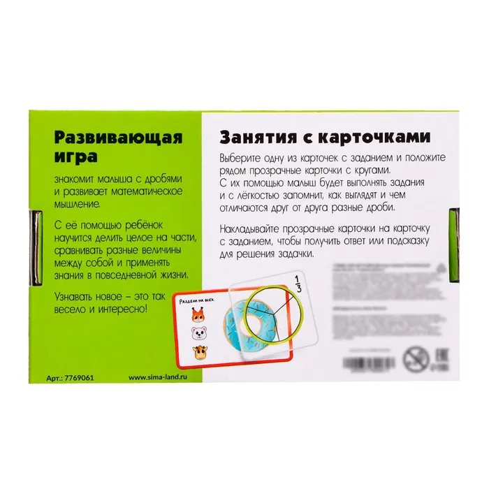 С развивающим лото «Учимся делить» ребёнок потренируется делить целое на части, сравнивать разные величины между собой и применять полученные знания в повседневной жизни.