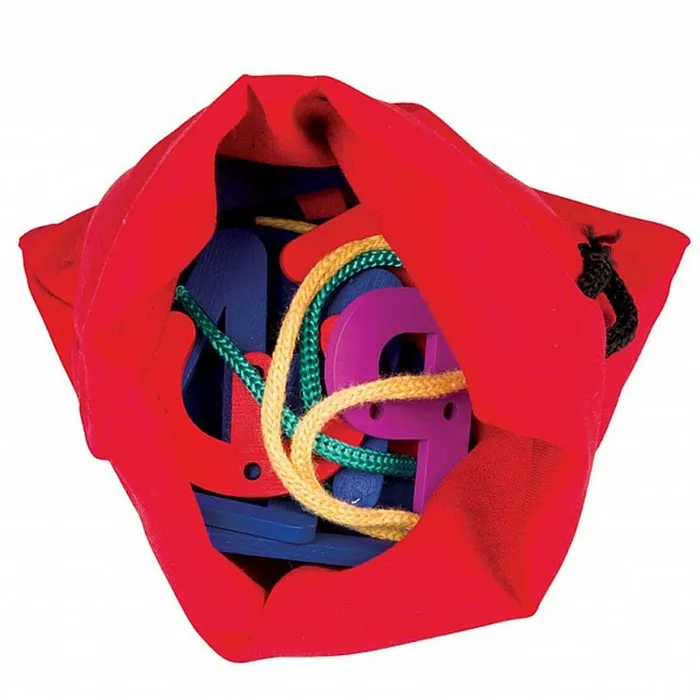 - В набор входят буквы алфавита и шнурочки, позволяющие детям нанизывать буквы в правильном порядке.