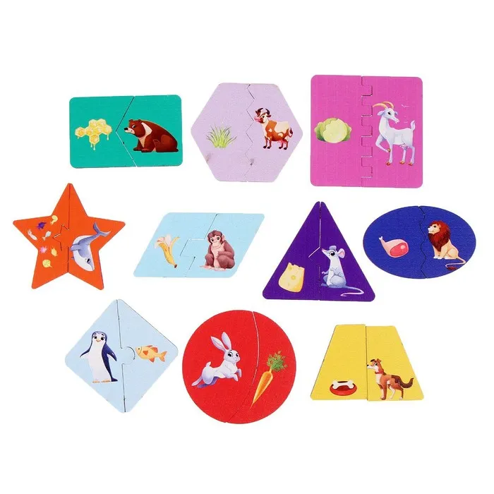 Суть игры: найти подходящие друг другу пазлы по логике, форме и цвету.