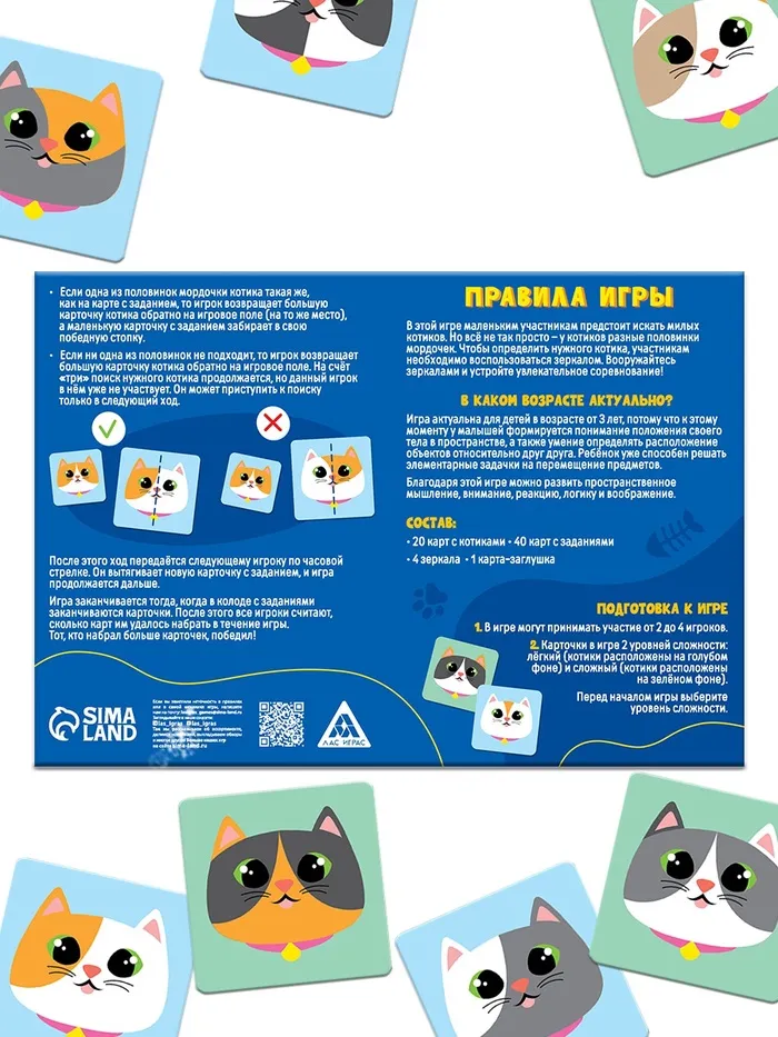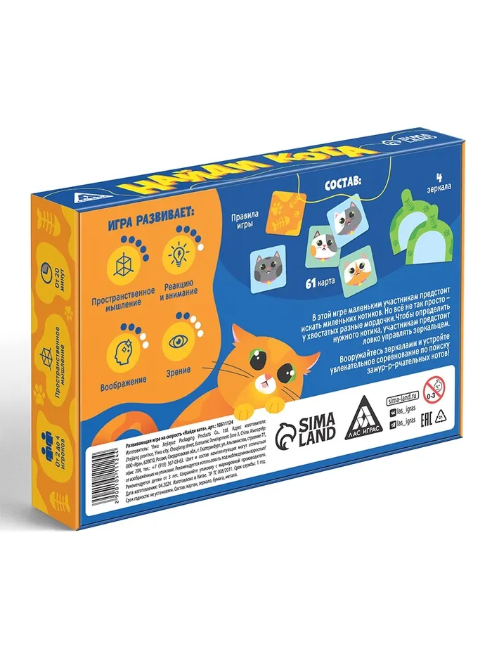Развивающая игра на скорость «Найди кота», 61 карта, 3+ — Характеристики