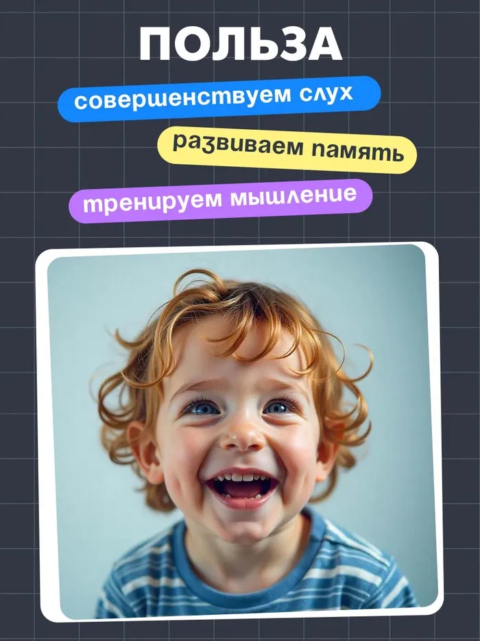 Карточки тренируют внимание, память и умение сопоставлять информацию. Вопросы построены так, чтобы ребёнок задействовал логическое мышление и слуховое восприятие. Эта игра — простой и эффективный способ подготовки к школе.