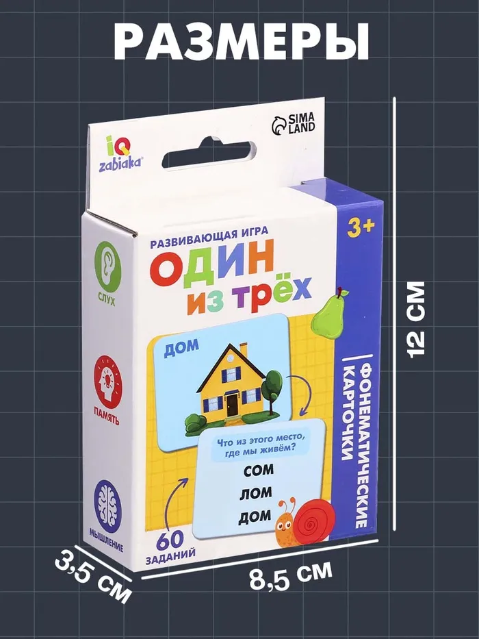 Развивающая игра «Один из трёх», 60 заданий, 3+ — Характеристики