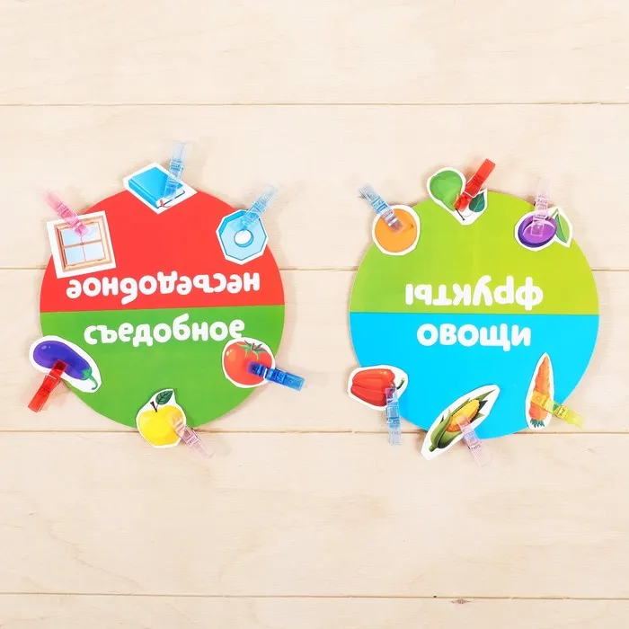 Развивающая игра с прищепками «Формы, овощи и фрукты», в пакете — Характеристики