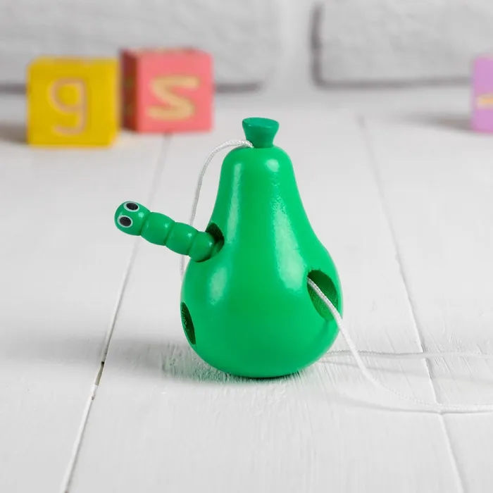 Ребёнок должен помочь милому червячку проползти по всем отверстиям в груше.