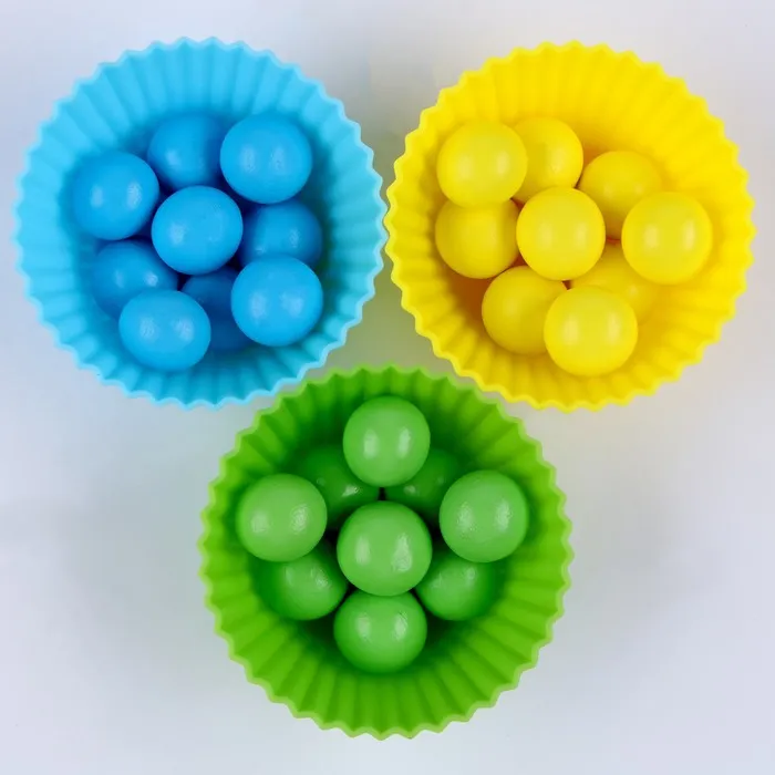 - Используйте яркие шарики для сортировки по цветам и подсчёта количества.