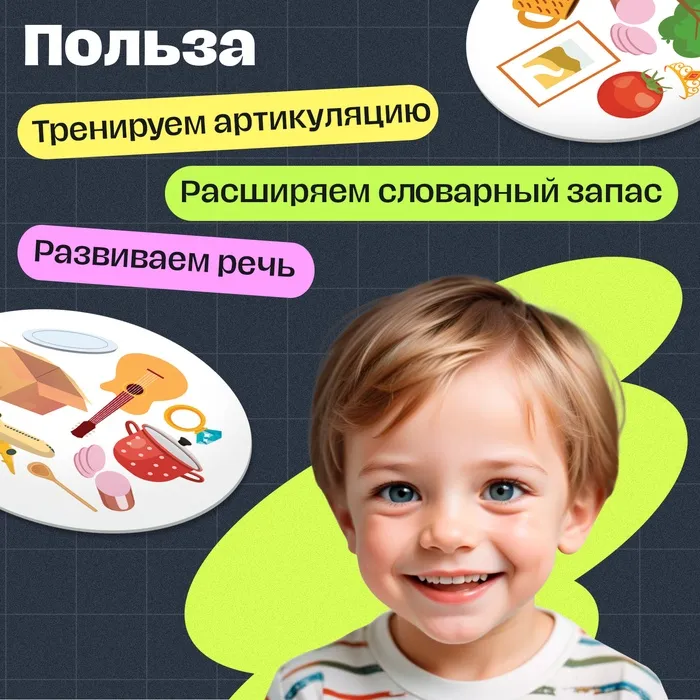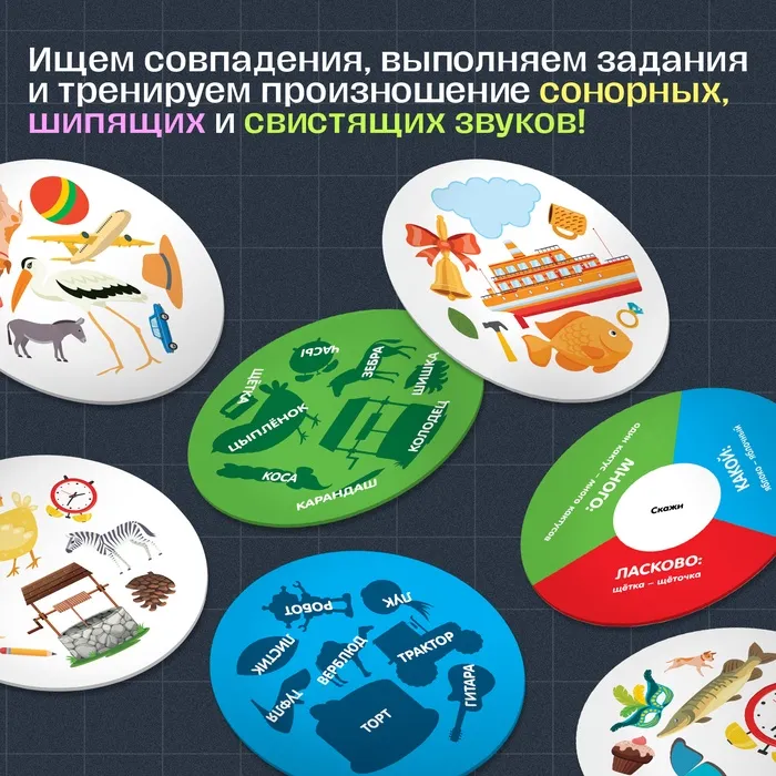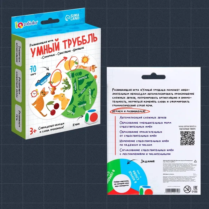 Развивающий набор «Умный труббль» поможет малышам от 3 лет автоматизировать произношение сложных звуков, потренировать артикуляцию и внимательность, научиться изменять слова и сформировать грамматический строй речи.
