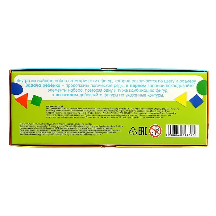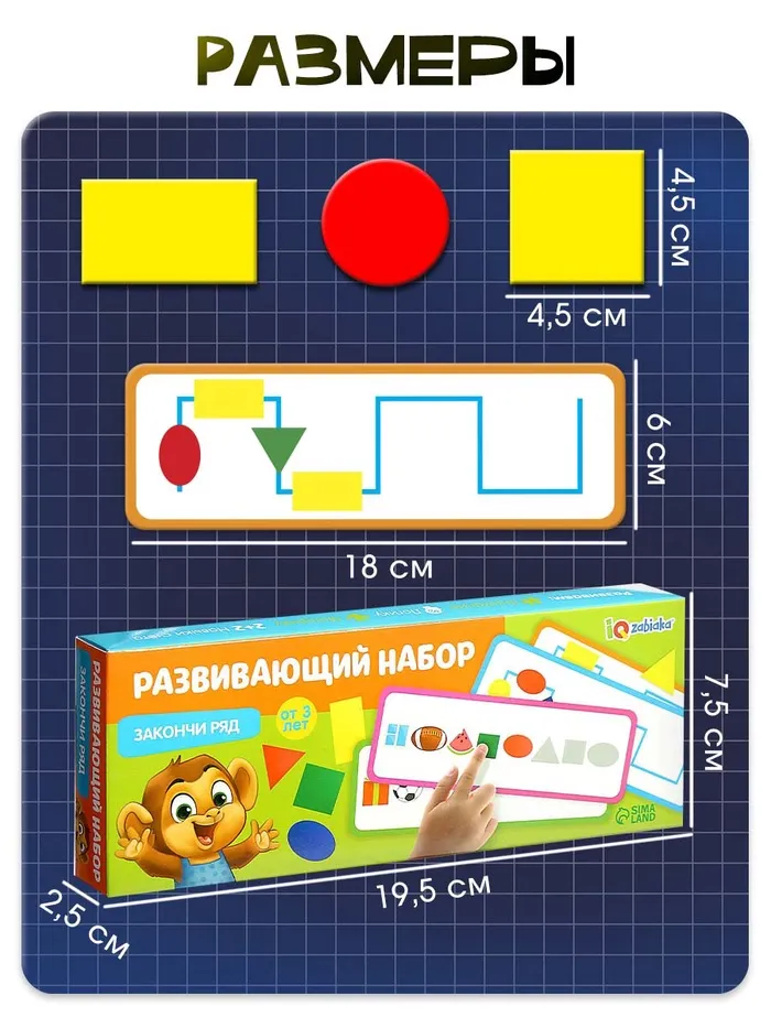 Развивающая игра «Закончи ряд», 10 карточек, картонные фигурки, по методике Монтессори — Характеристики