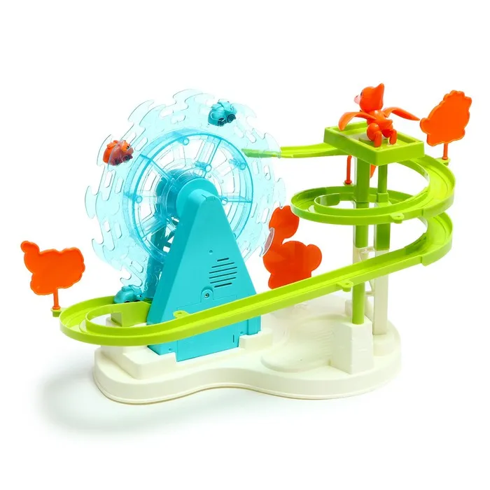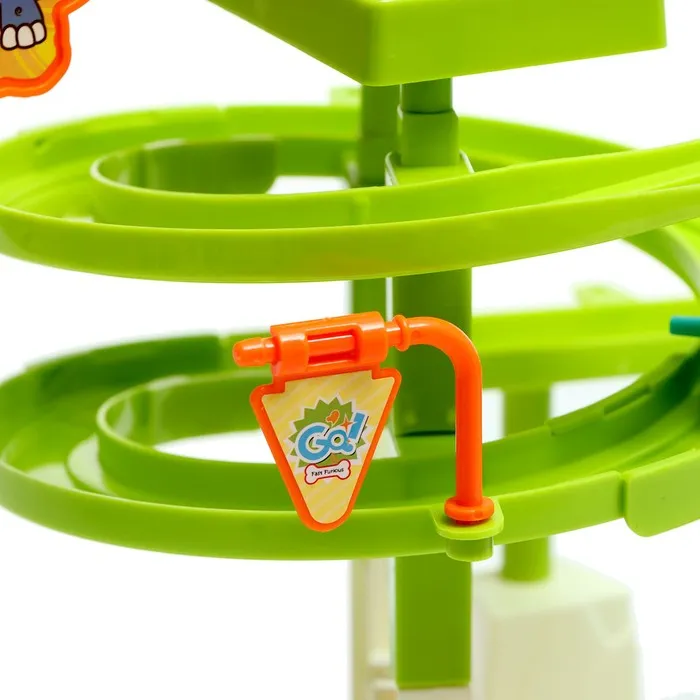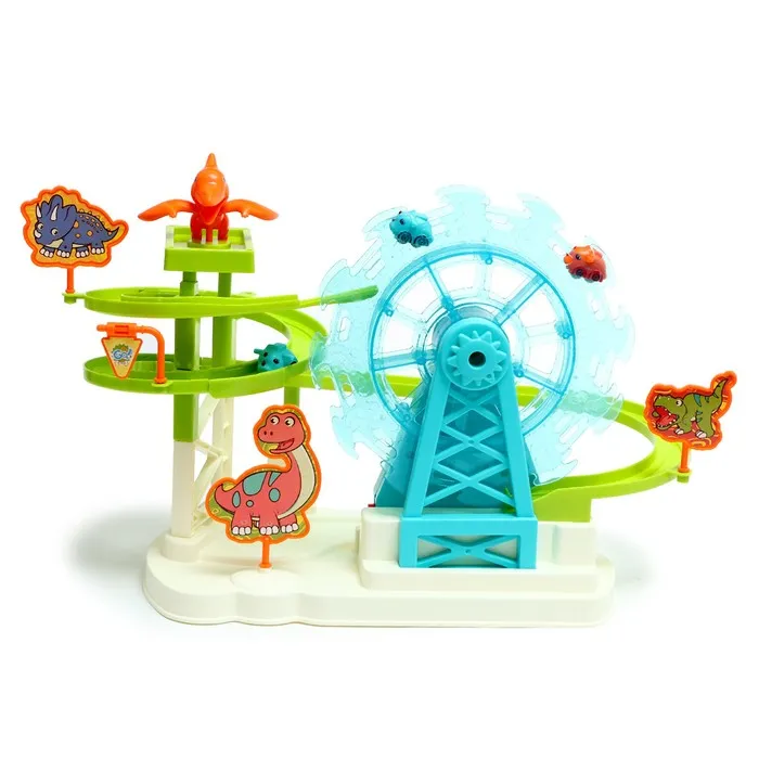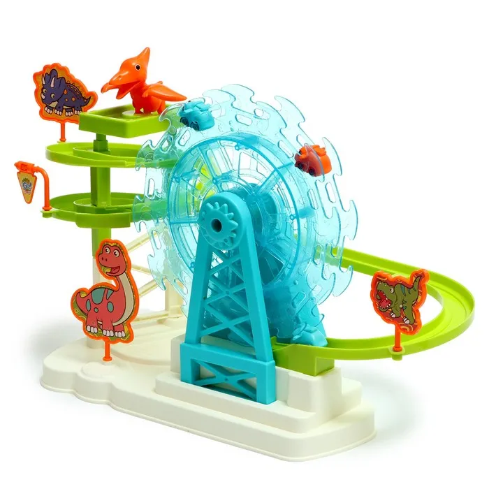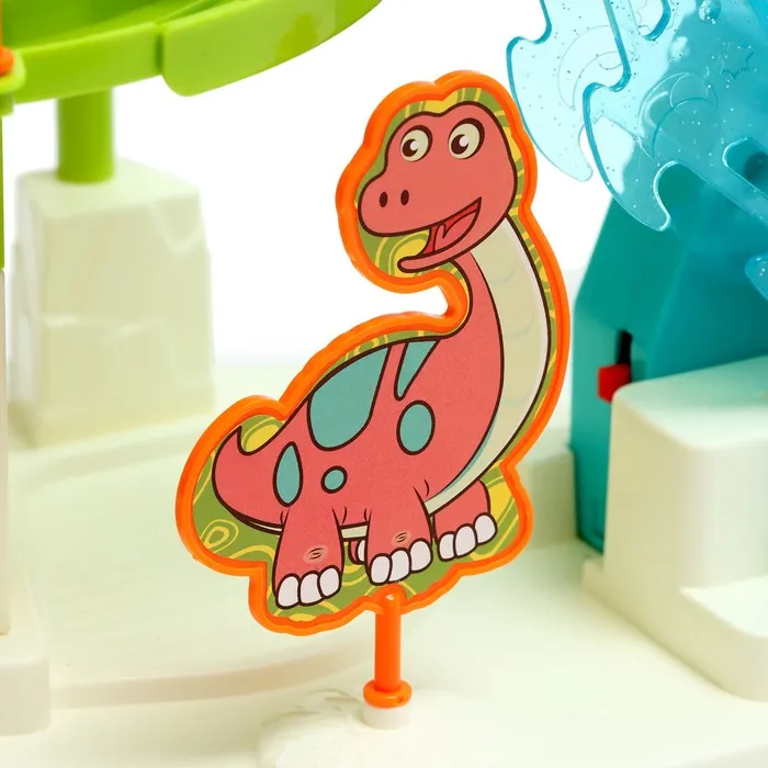 Динамичная игрушка с динозаврами превращает обычную горку в увлекательное шоу с подвижными персонажами и звуковыми эффектами. Ребёнок будет наблюдать, как маленькие динозавры катаются по кругу и спускаются с горки — всё это сопровождается музыкой и светом.