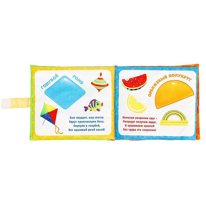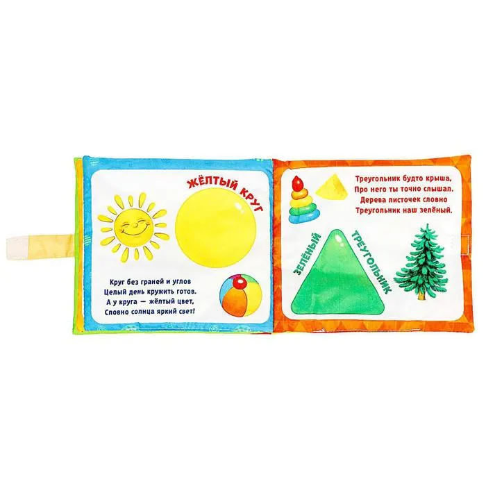 - Мягкие текстильные страницы легко переворачиваются, а яркие картинки удерживают внимание ребёнка, способствуя развитию зрительного восприятия.
