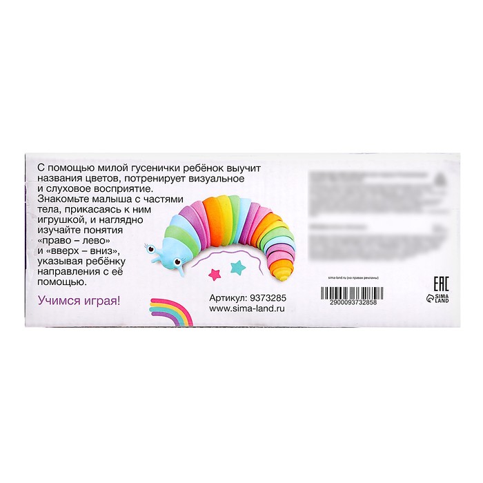 Развивающая игрушка «Моя гусеничка» поможет малышу потренировать визуальное и слуховое восприятие, мелкую моторику и воображение.