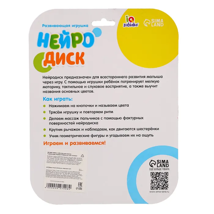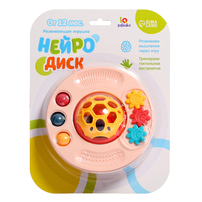 Развивающая игрушка «Нейродиск» разработана специально для малышей от 12 месяцев. С такой игрушкой ребёнок потренирует моторику и тактильное восприятие, а трогательный дизайн и звуки погремушки привлекут внимание и надолго займут малыша.
