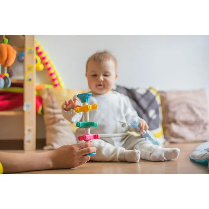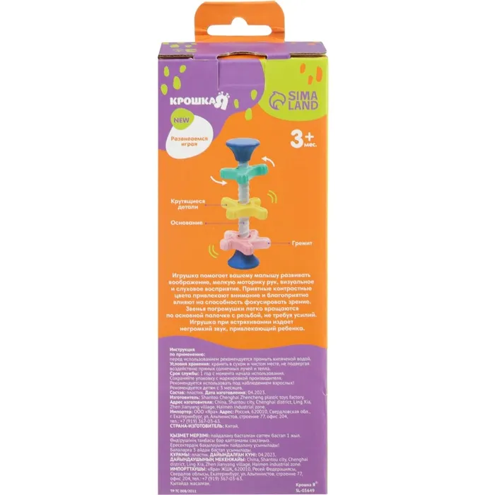 Развивающая игрушка пирамидка Крошка Я «Закрути меня» с шестеренками, погремушка — Характеристики