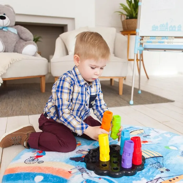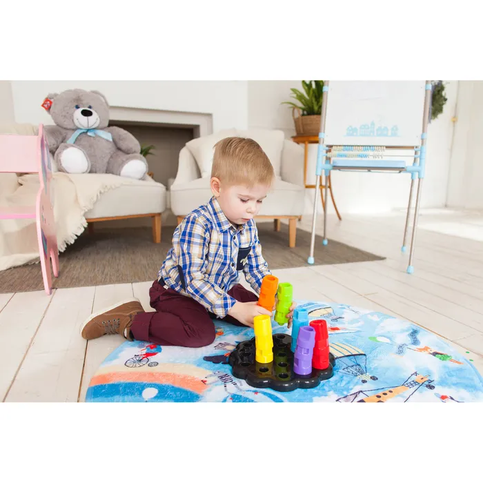- Яркие и цветные элементы увлекут непоседу надолго.