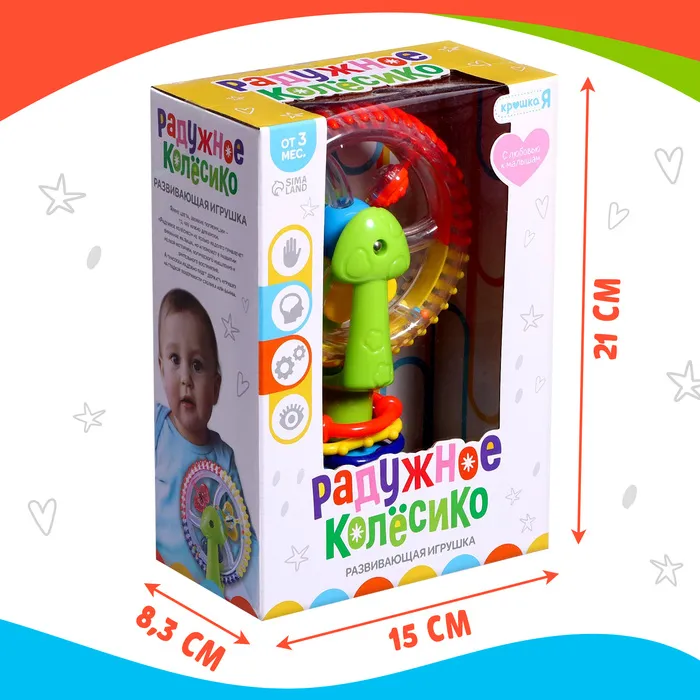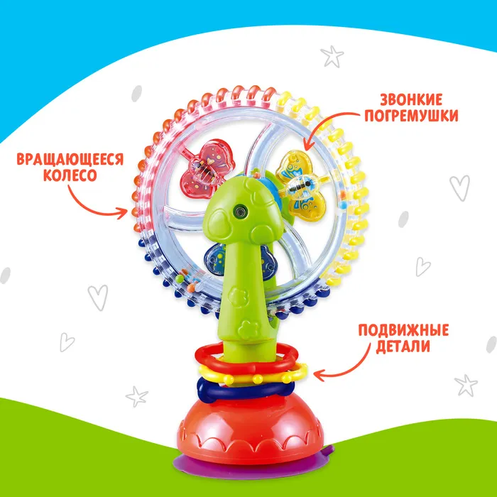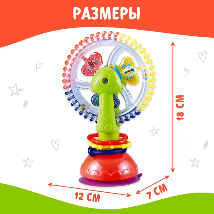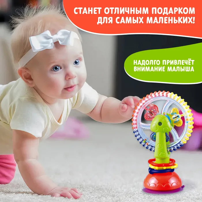 Развивающая игрушка «Радужное колесо» на присоске станет отличным подарком для малышей от 3 месяцев. Игрушка помогает развивать важные навыки через игру, увлекая ребёнка яркими цветами, движущимися элементами и тактильными ощущениями.